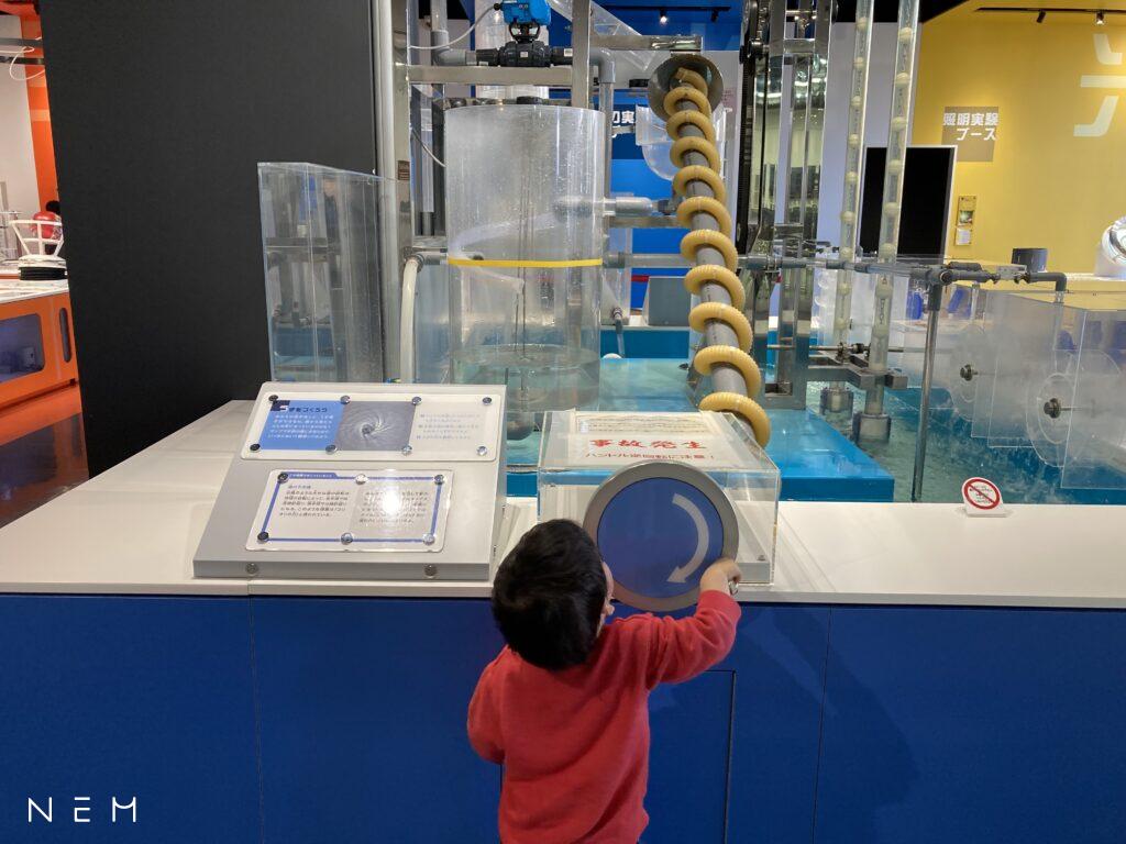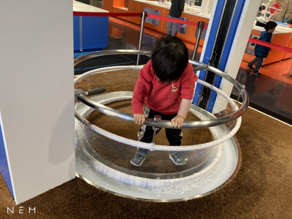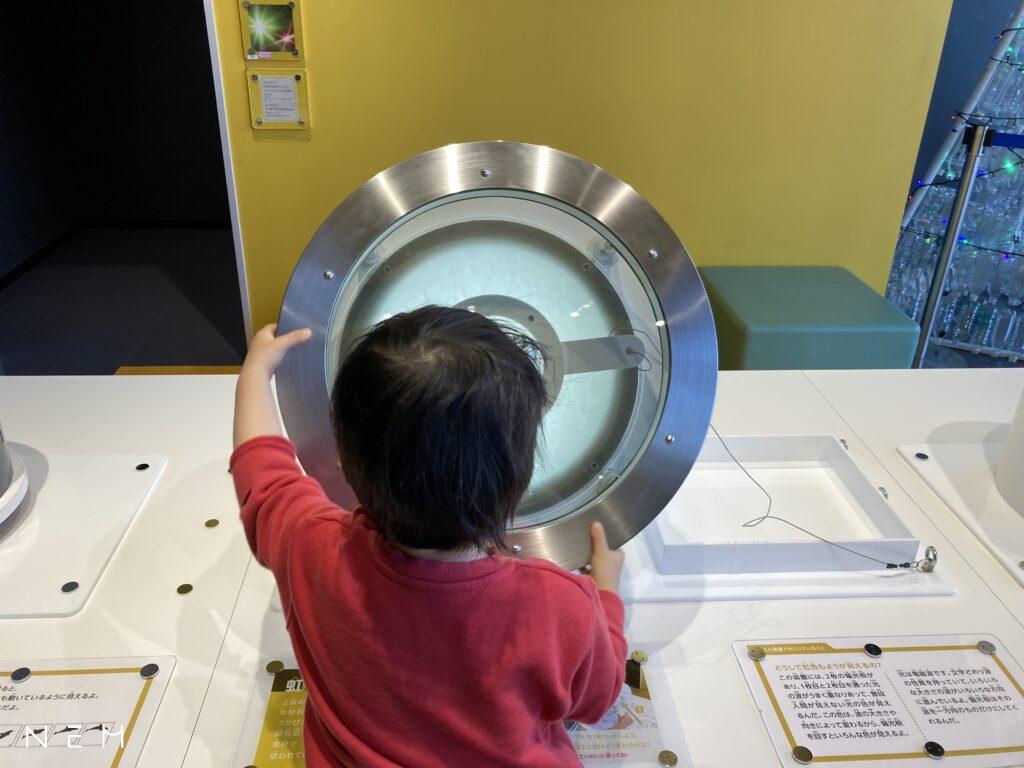 実は、都内の大規模な有名科学館にも2歳になる我が子と一緒に行ったことがあるのですが、その時は、低年齢では操作が難しい実験装置が並んでいたり、規模が大きすぎたこともあり、子どもは早々に飽きてしまいました。その点、こちらの未来わくわく館は小規模であり、低年齢でも操作しやすい装置が多かったりと、毎回飽きずに楽しめています。