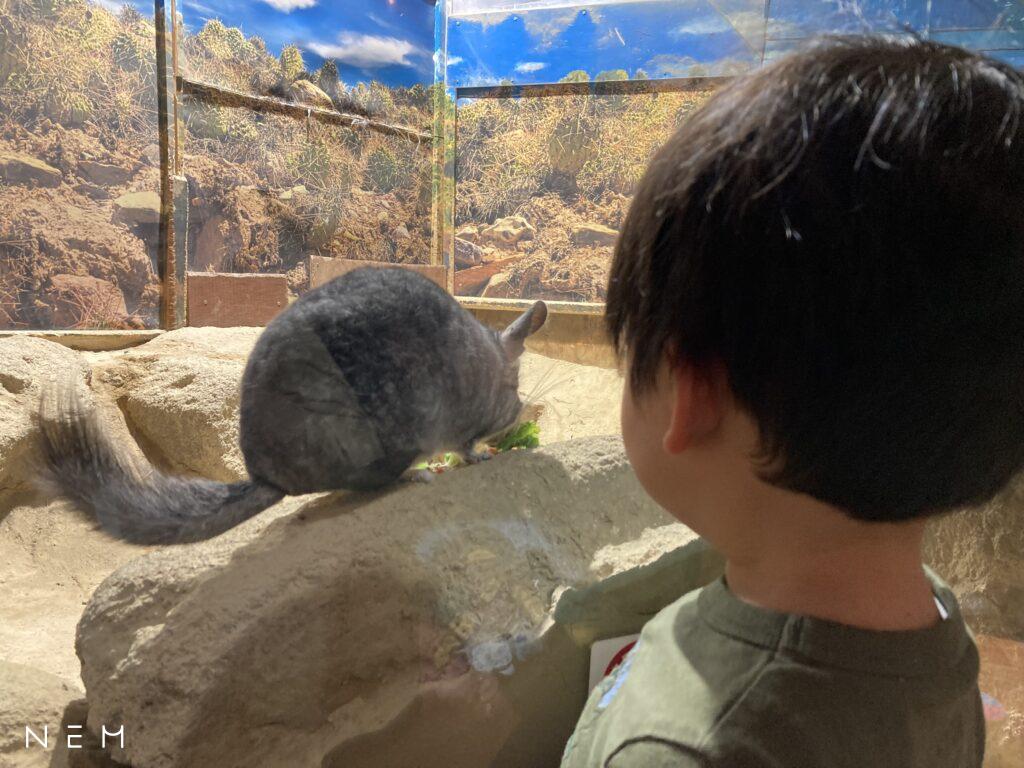 そのまま左手の方に進むと観察展示室となっており、魚類だけでなく、亀などの爬虫類やチンチラなどの哺乳類の展示を見ることができます。訪れたタイミングがちょうどチンチラのごはんタイムだったようで、食事をする可愛いチンチラの姿を楽しむこともできました。
