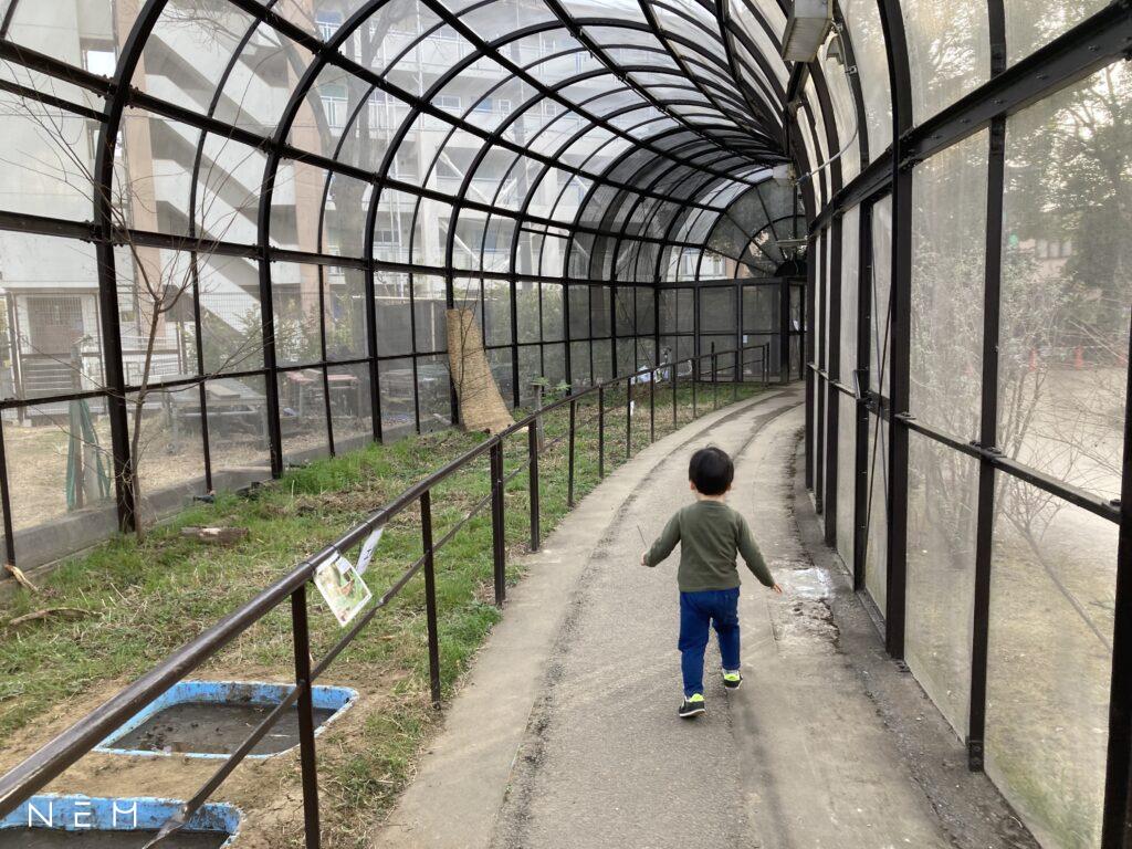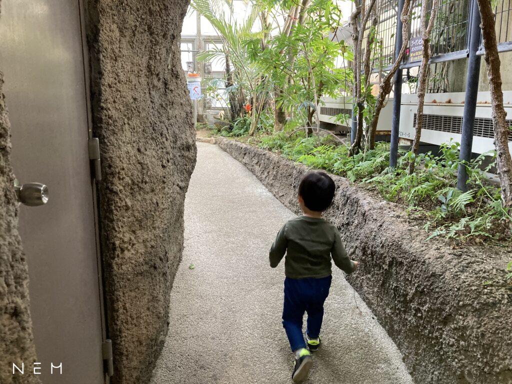 また、足立区生物園は屋外の「庭園スペース」も充実しており、2歳児がのびのび移動できるほどの広大な敷地です。