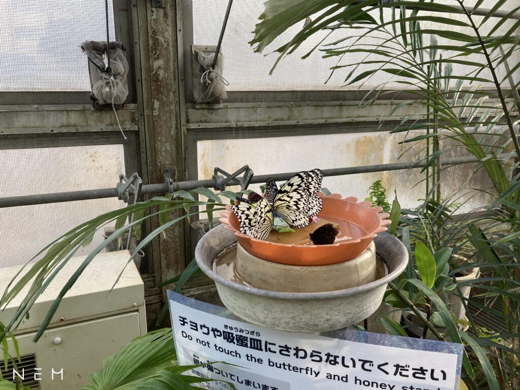吸密皿が設置されており、そこで長いストロー状の口で蜜を吸っている姿のチョウを間近で観察することができます。普段出会うチョウはこんなに間近で観察させてはくれないので、チョウの生態について知ることのできるとても良い機会になるのではないでしょうか。