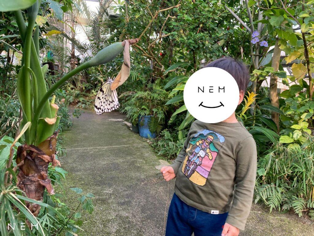 チョウが飼育されている「大温室」は、温室というだけあり、3月現在でもやや暑いと感じる室温です。お子さんと一緒に訪れる際は、Tシャツにパーカーを羽織るなど、調節しやすい服装がおすすめです。